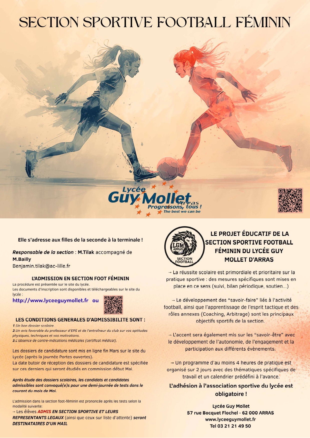 Rentrée 2026 : ouverture de la section sportive Football Féminin